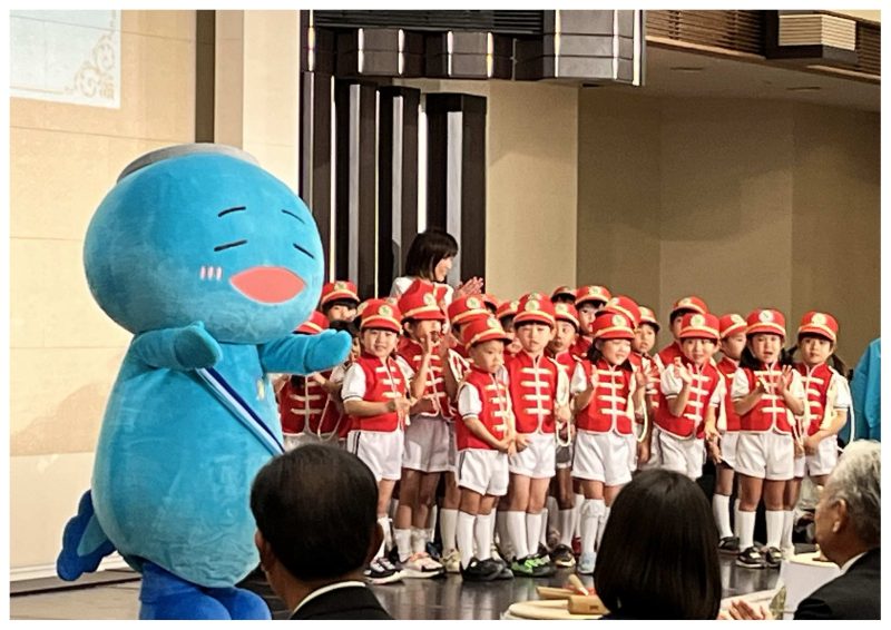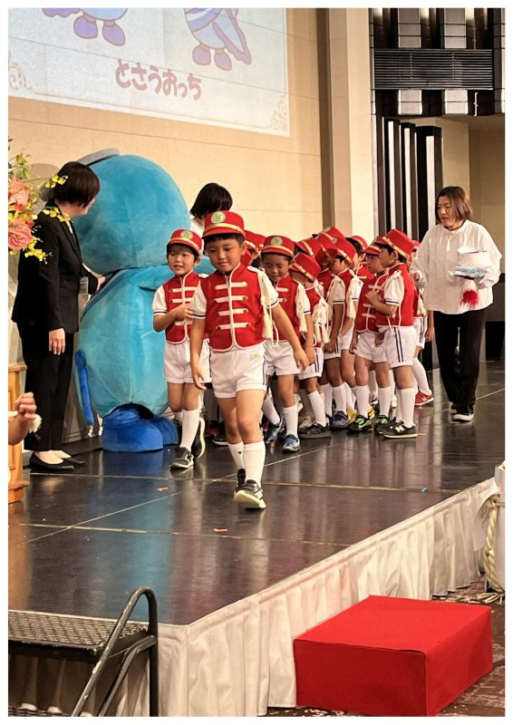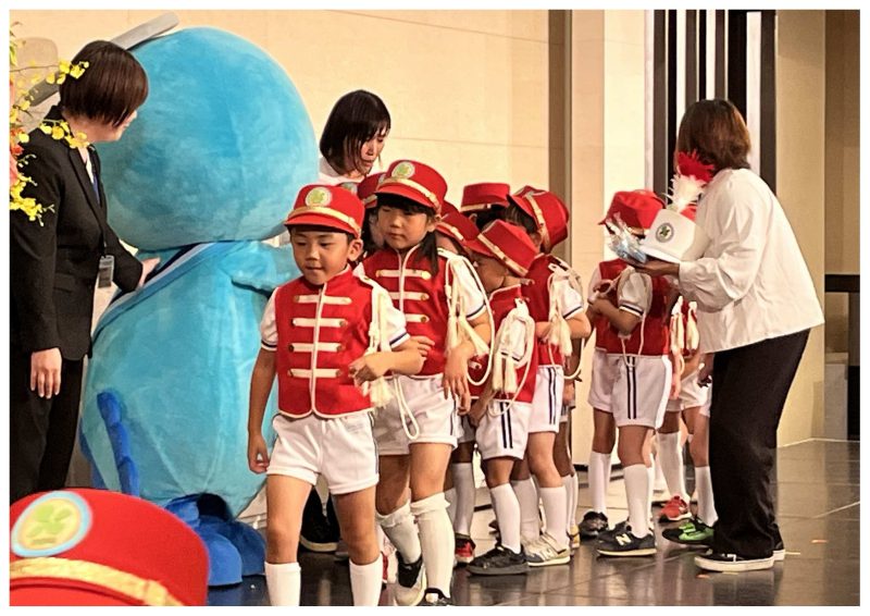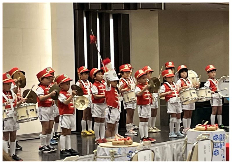 今日、城西館で2時から開催された高知市水道通水100周年記念式典の開式にゆり組の子ども達が鼓隊演奏で参加しました。