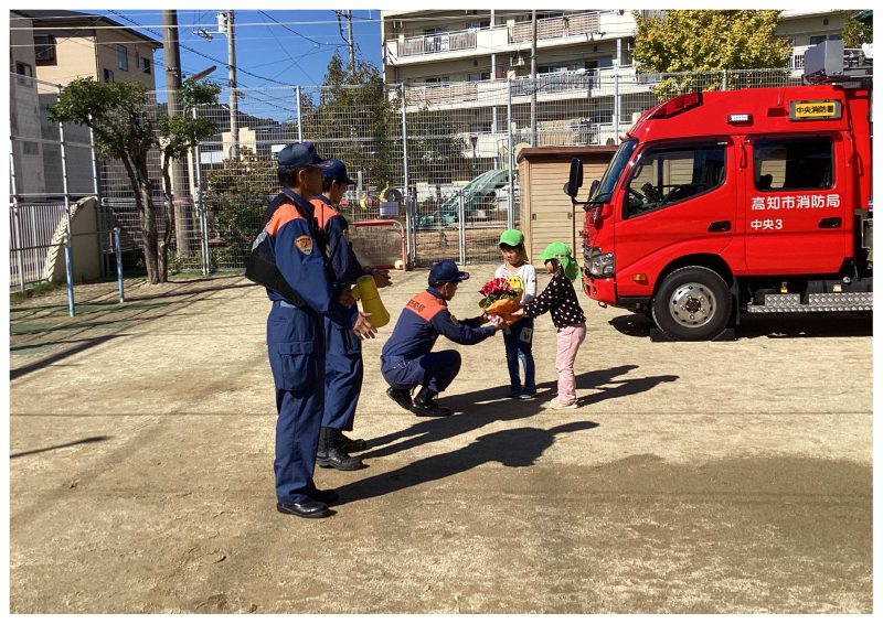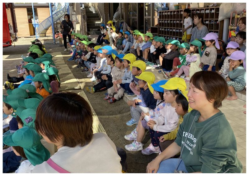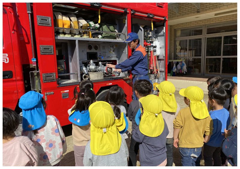 潮江児童遊園から、保育園に帰ってきた後、消防士さんのお話を聞きました。