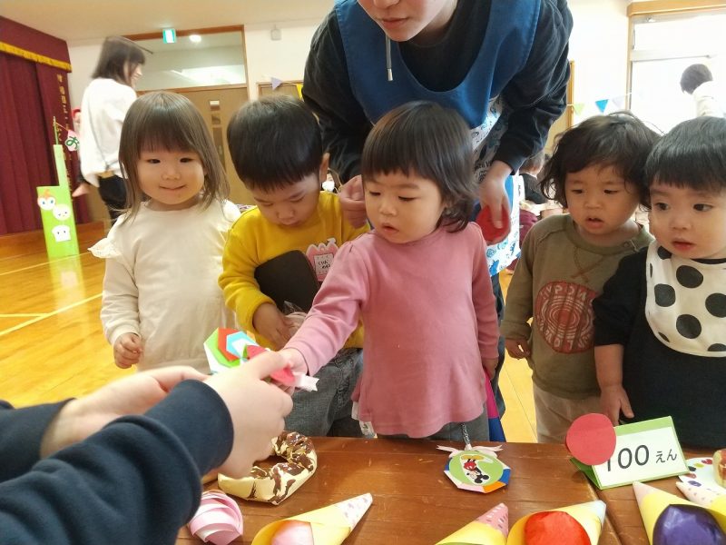 ひよこ組さんから順番にお買い物ごっこを楽しみました。