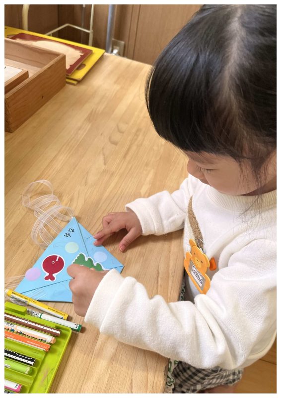 まずは、金魚のお財布に、あぶくシールを貼ったり、お魚を描いて、お財布作りをしました。