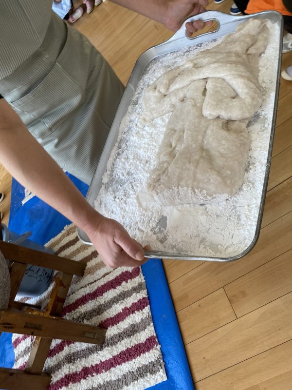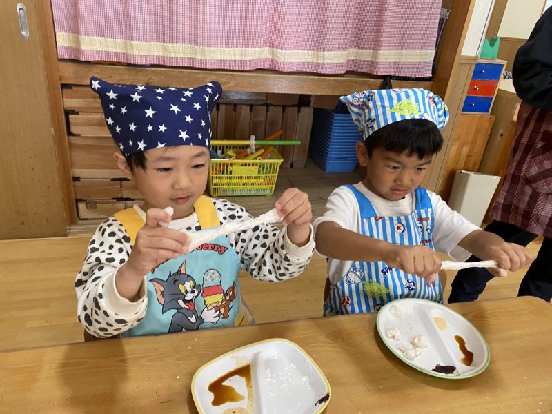 先生たち&ゆり組パワーで、こんなにのびのびのおもち完成!!