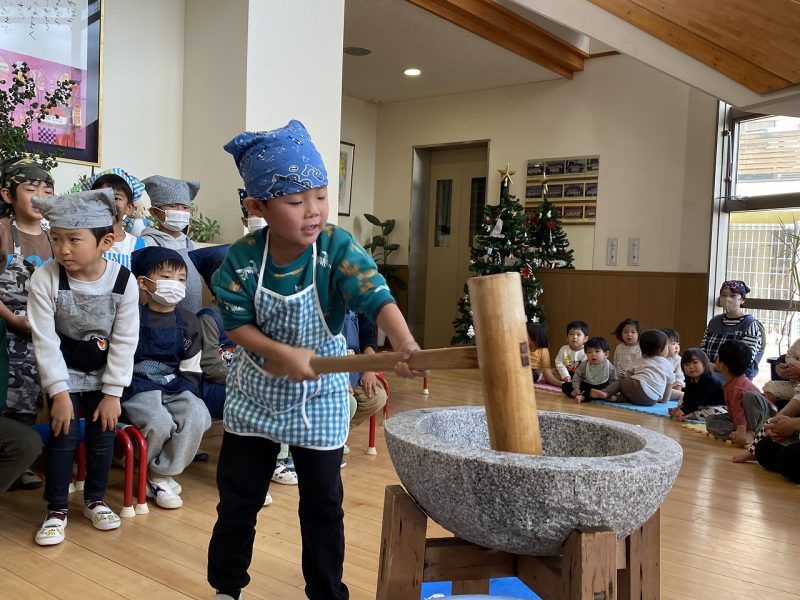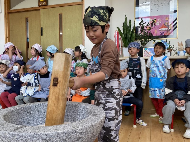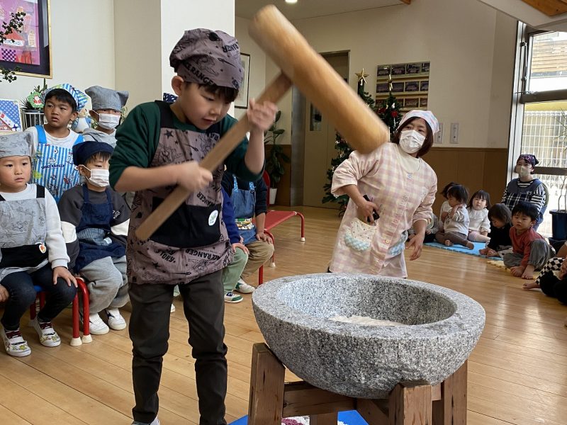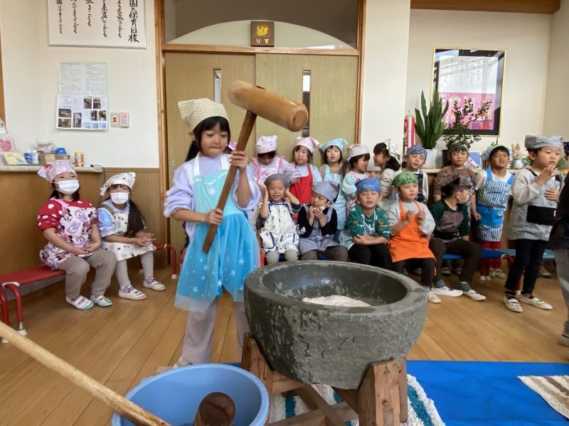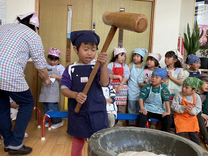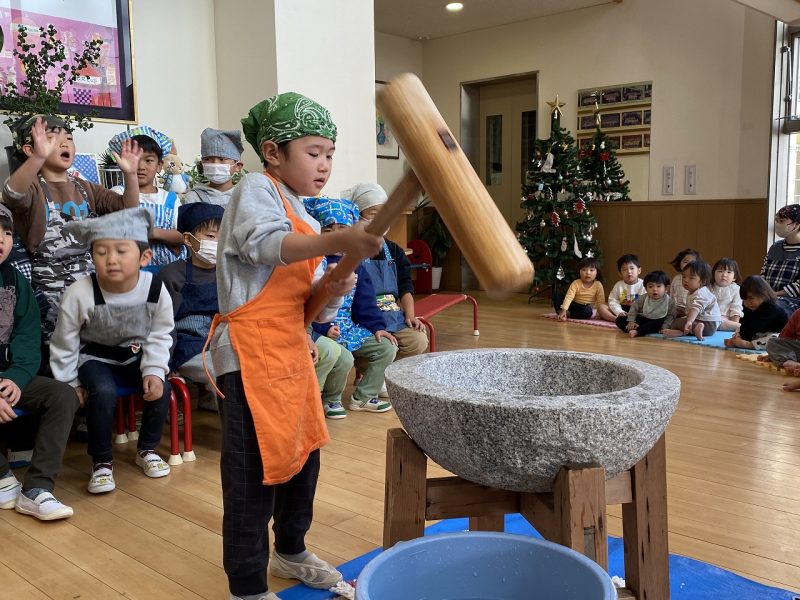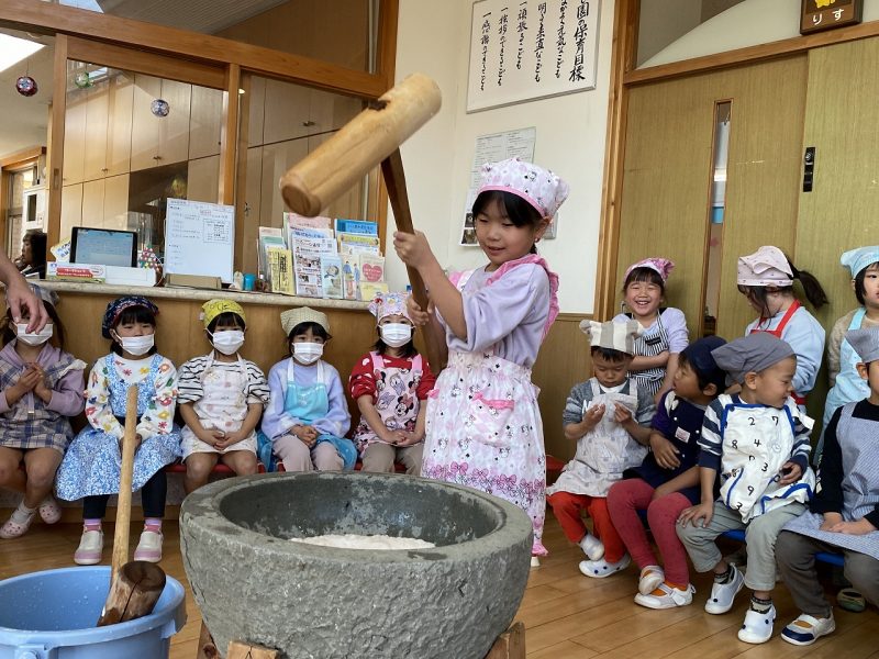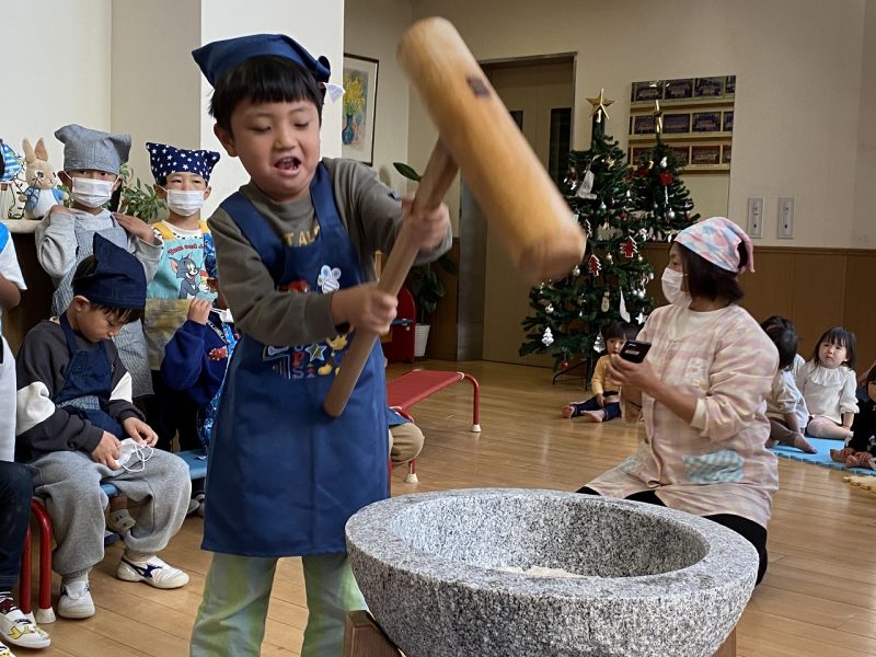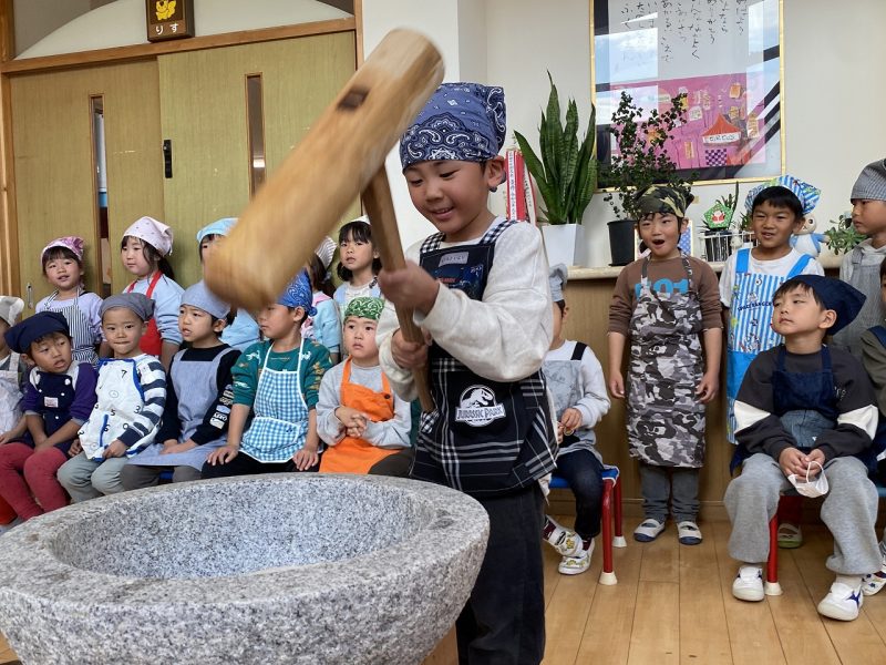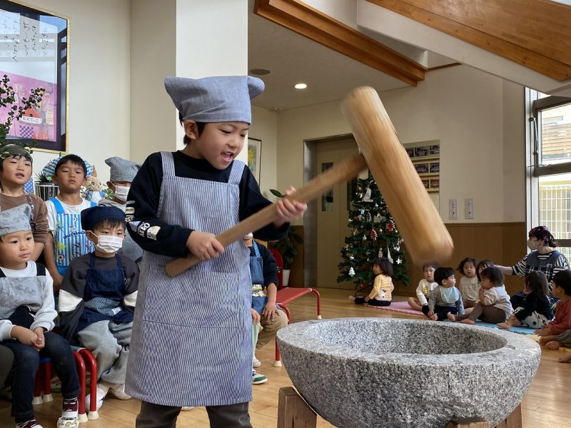 ゆり組さんは、杵を高く振り上げて、掛け声に合わせてぺったんこ~