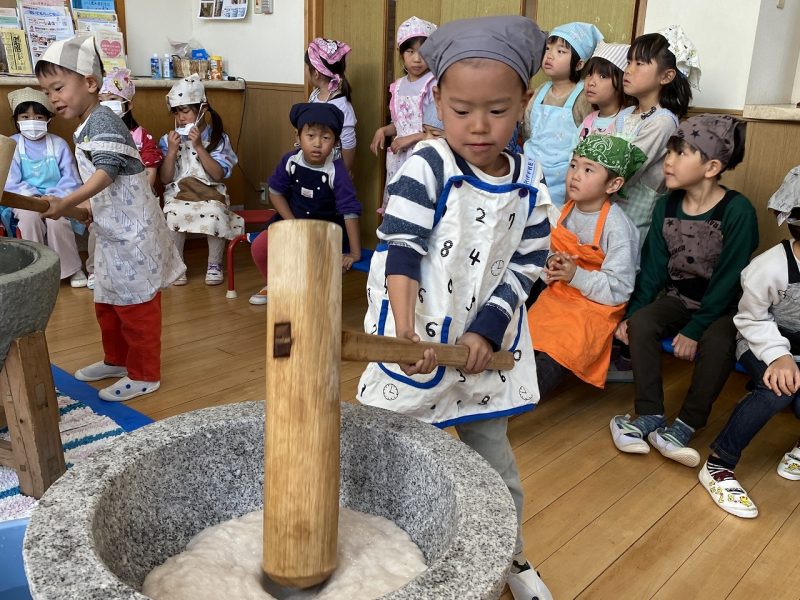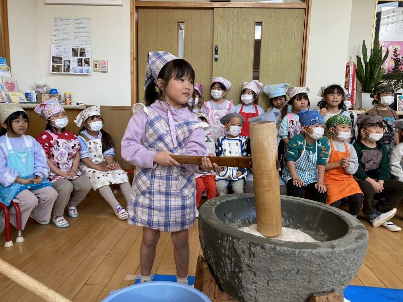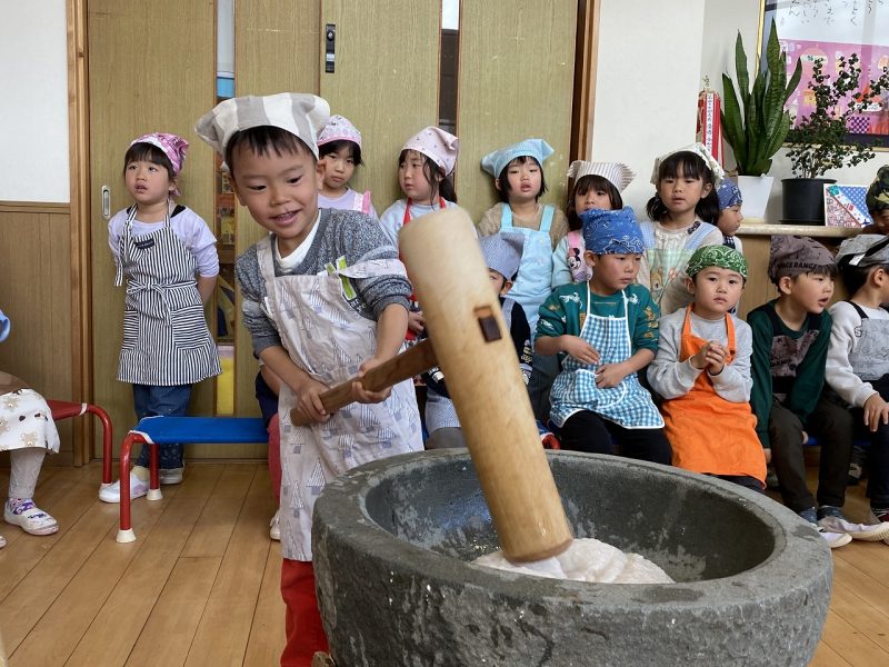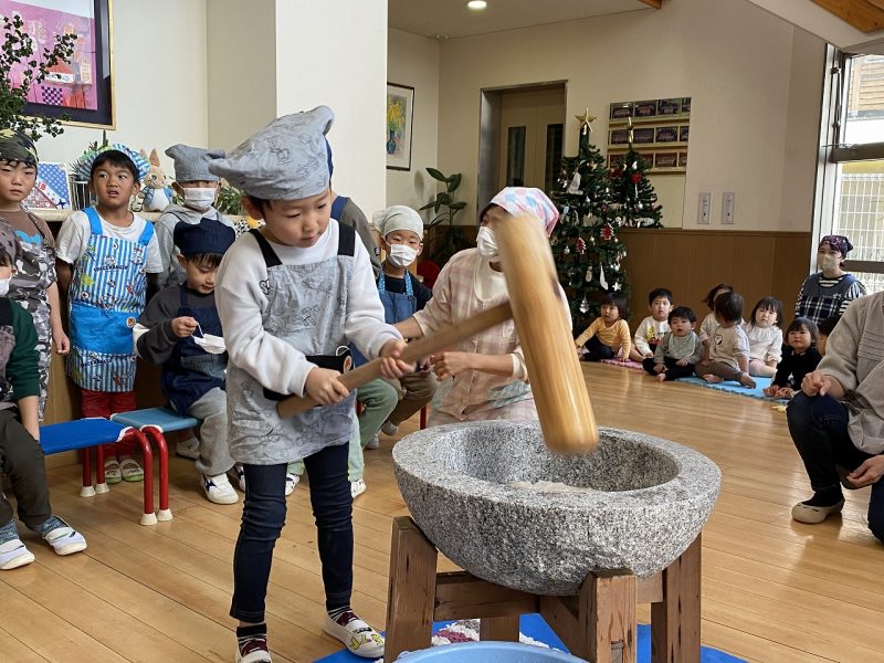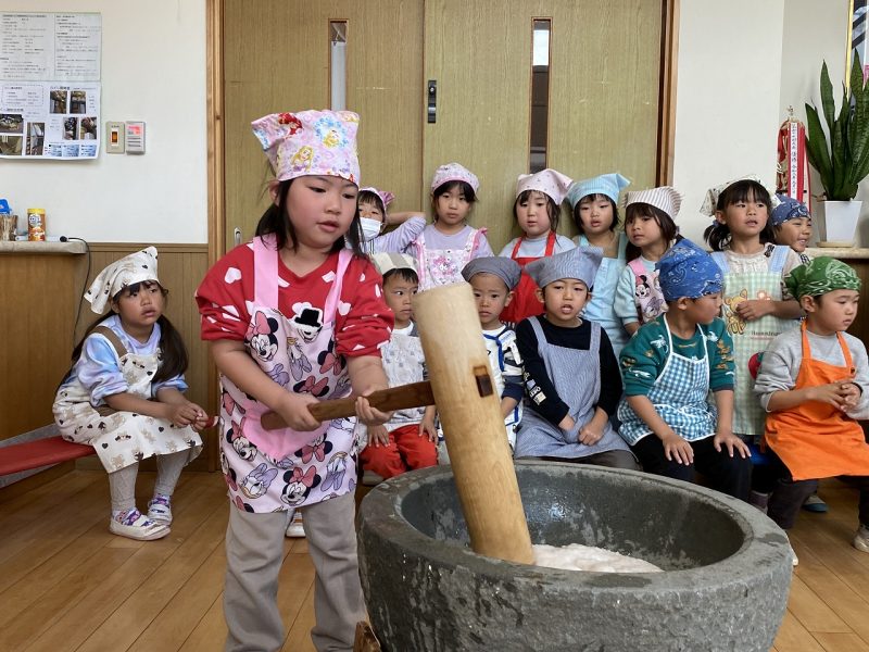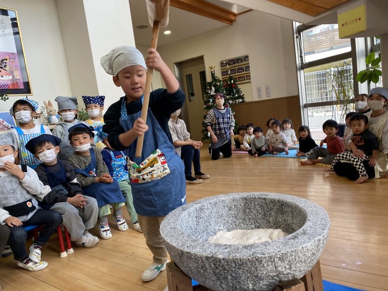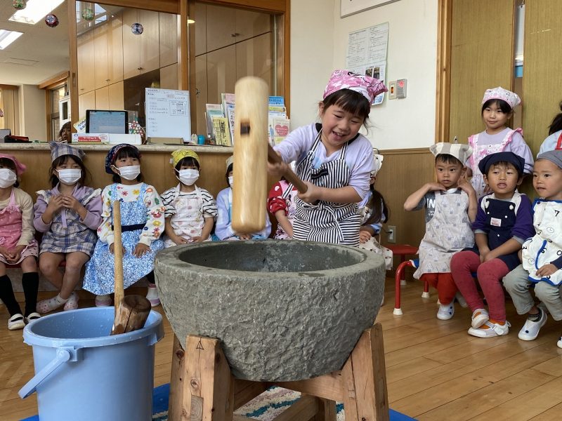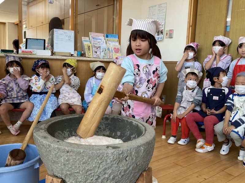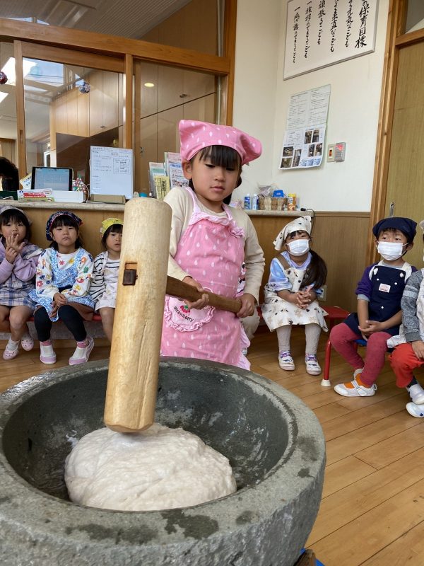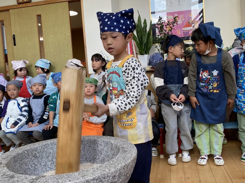 ゆり組さんは、杵を高く振り上げて、掛け声に合わせてぺったんこ~