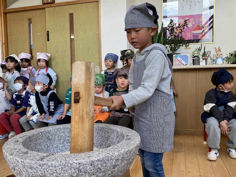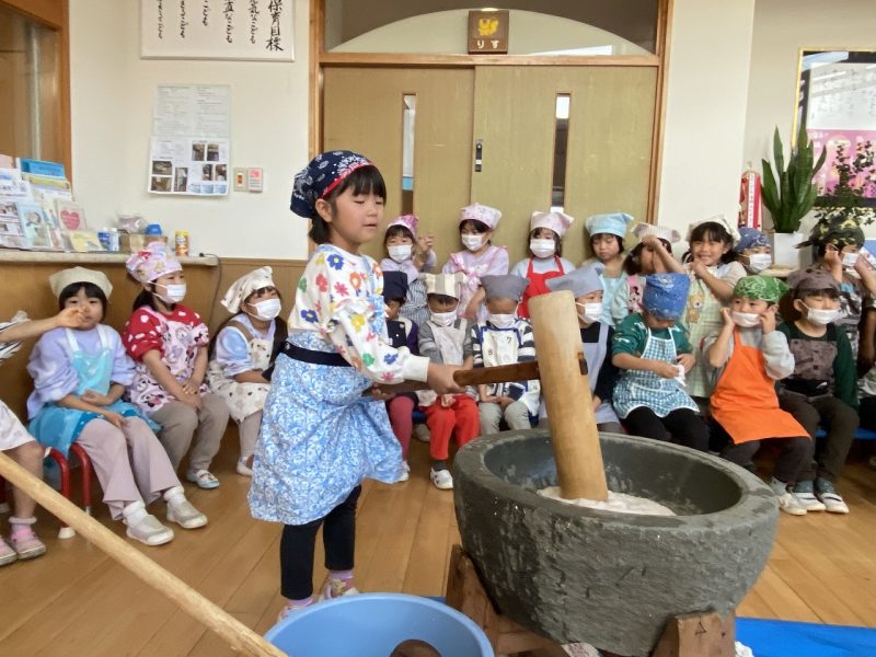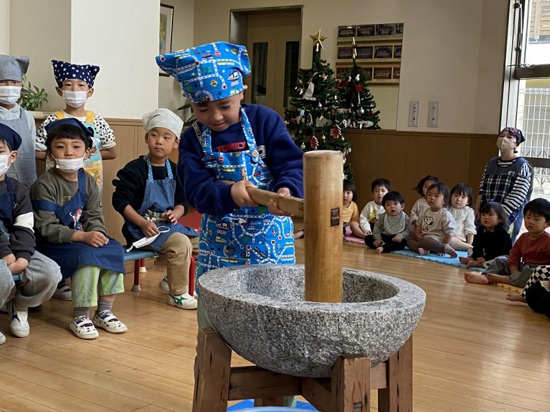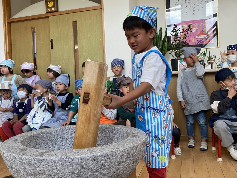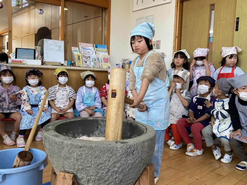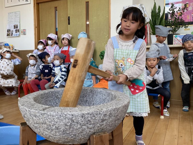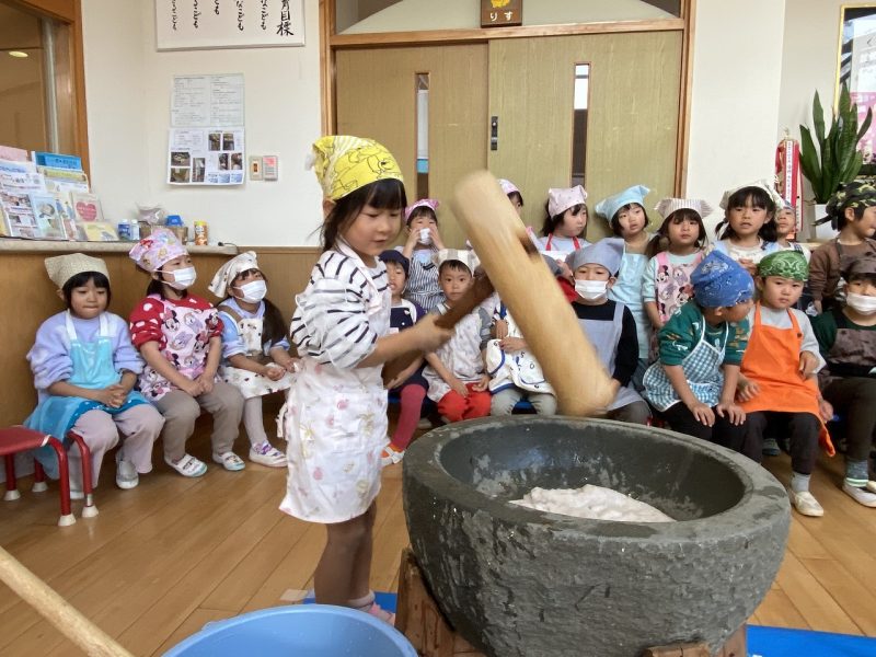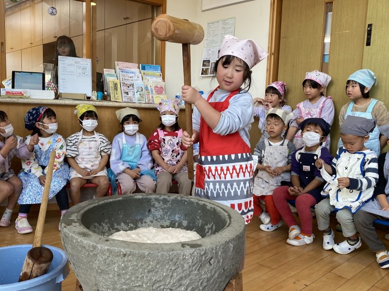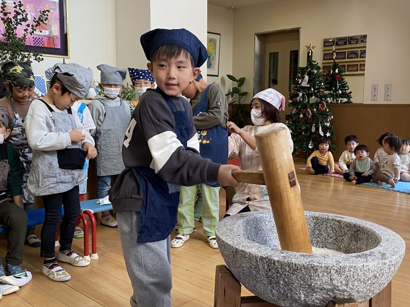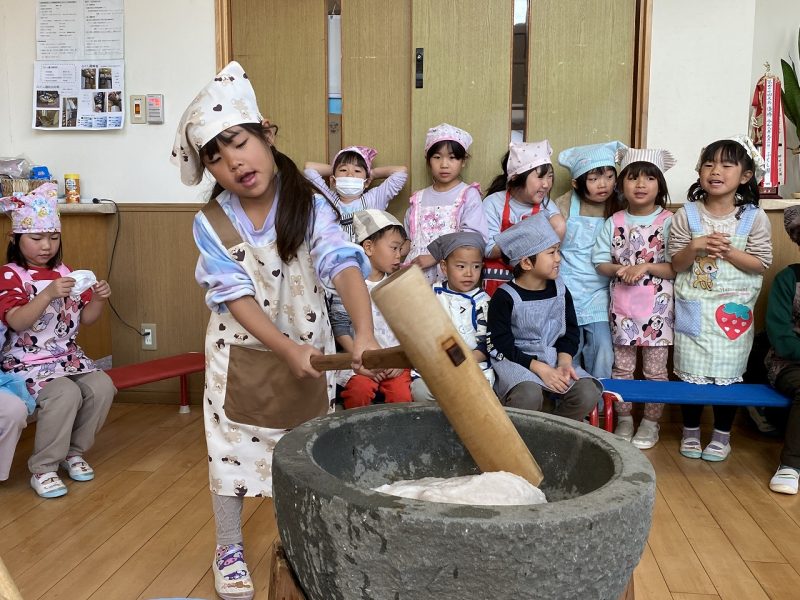 ゆり組さんは、杵を高く振り上げて、掛け声に合わせてぺったんこ~