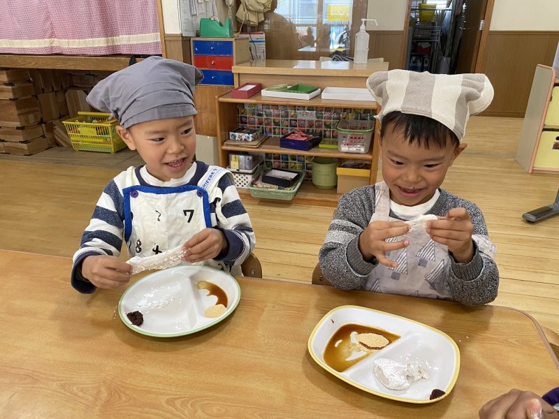 保育士がはじめについていると、『おいしくなあ~れ』のおまじないの言葉が・・・