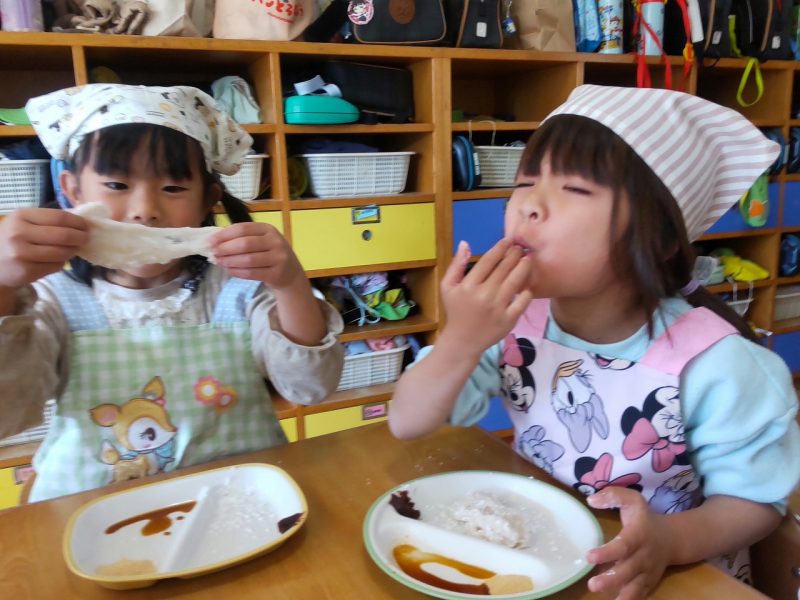 つき終わった後は、自分達でついたおもちを食べました(⌒∇⌒)