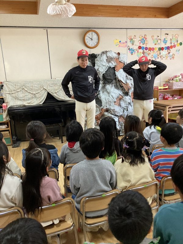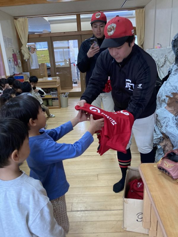 最後に、保育園でも野球ができるように、バットとボールをプレゼントしてもらいました。