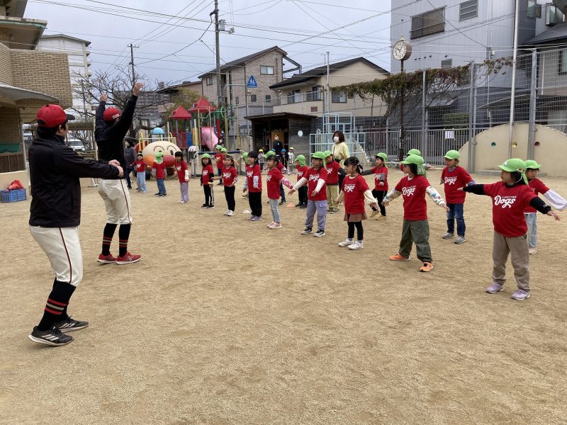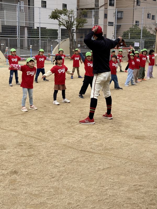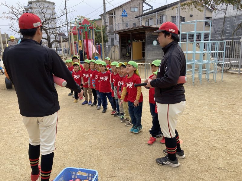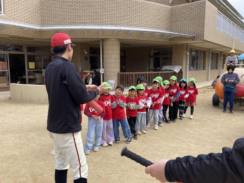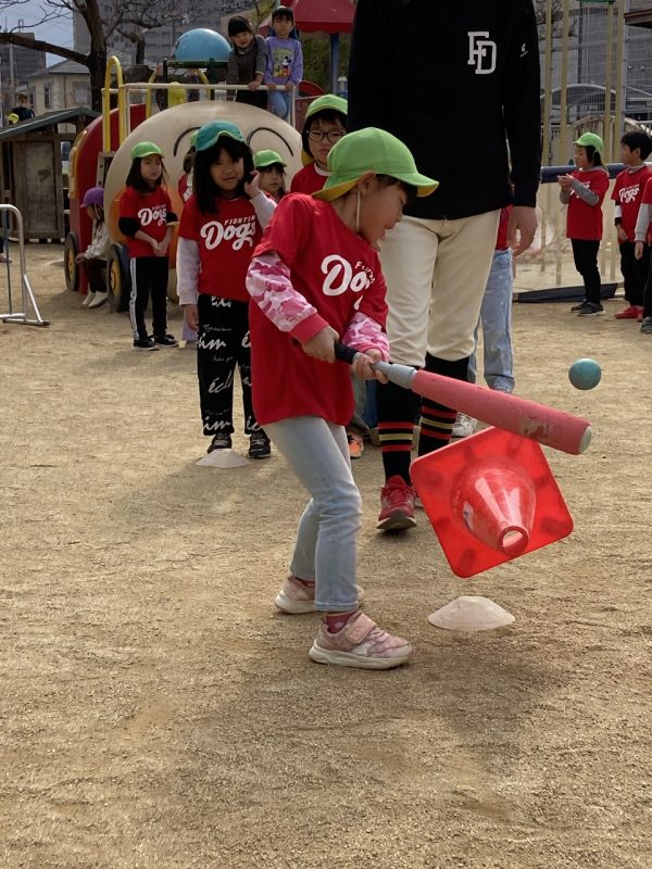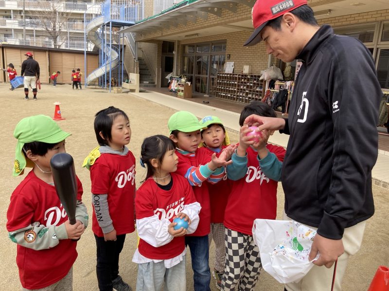 今日は、高知ファイティングドッグスのスクールコーチが2名来園し、野球を教えてくれました。