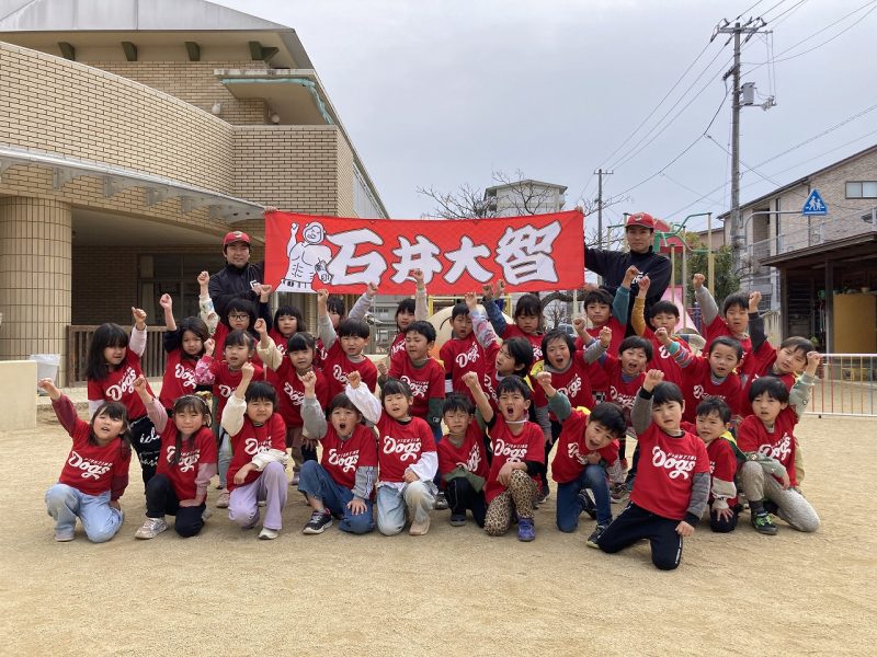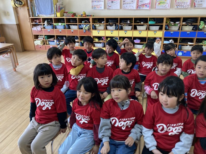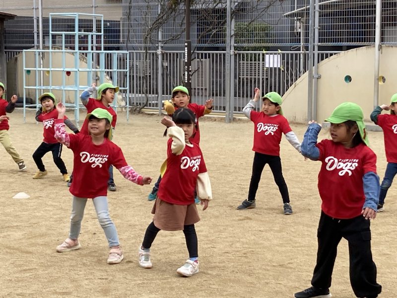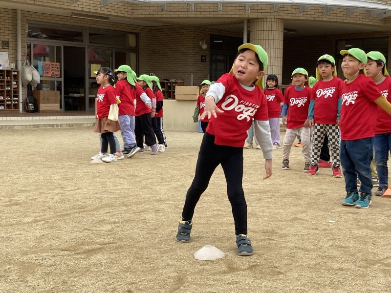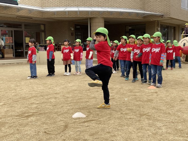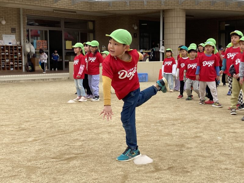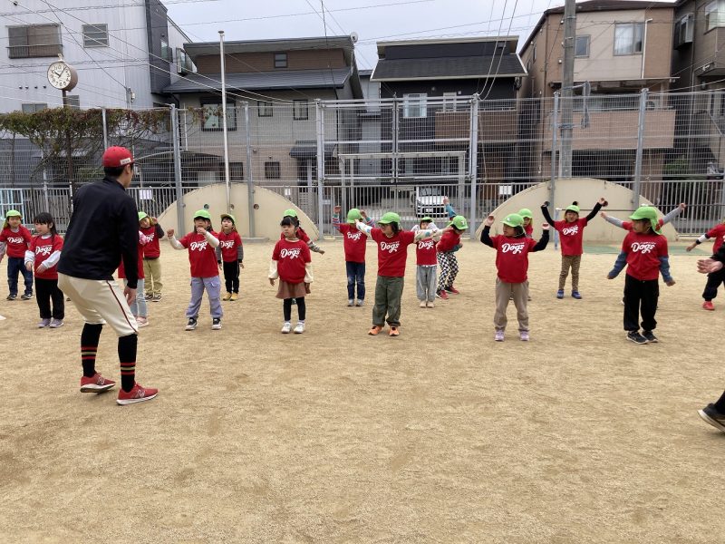 今日は、高知ファイティングドッグスのスクールコーチが2名来園し、野球を教えてくれました。