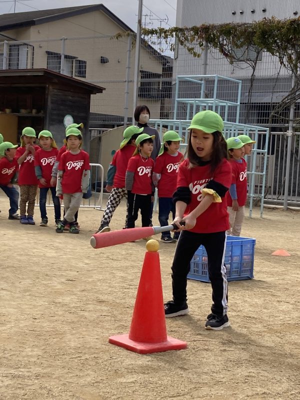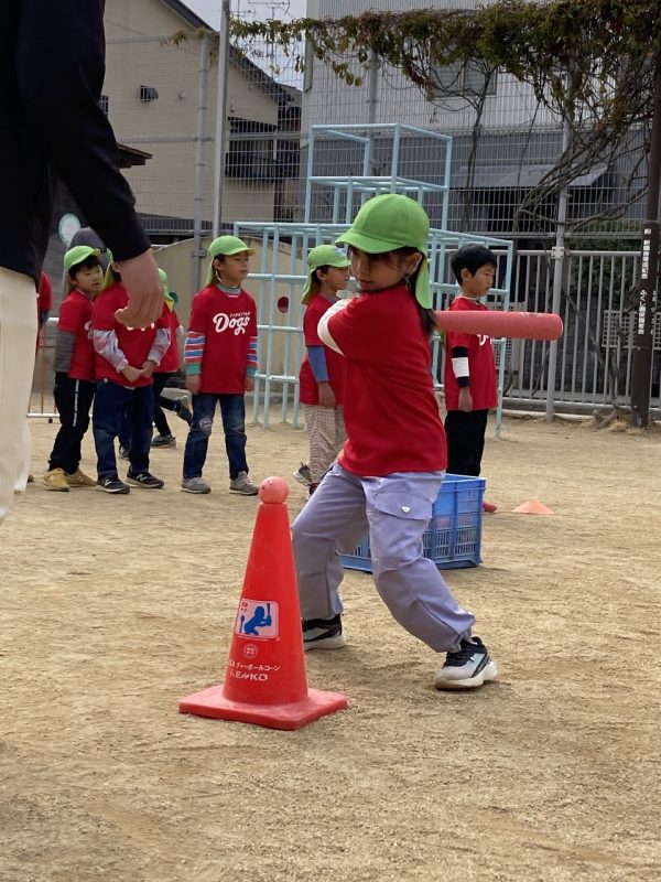 早速、頂いたバットを使って、野球を楽しんでいたゆり組の子ども達でした😊