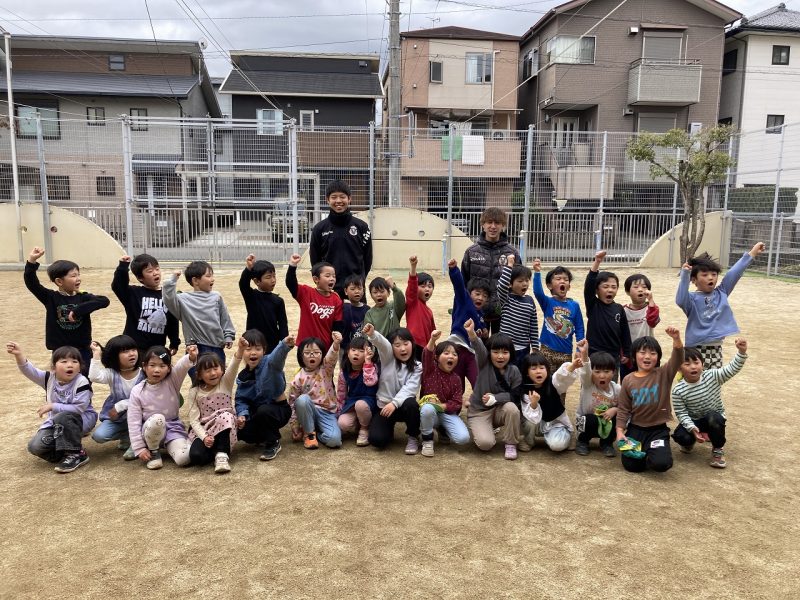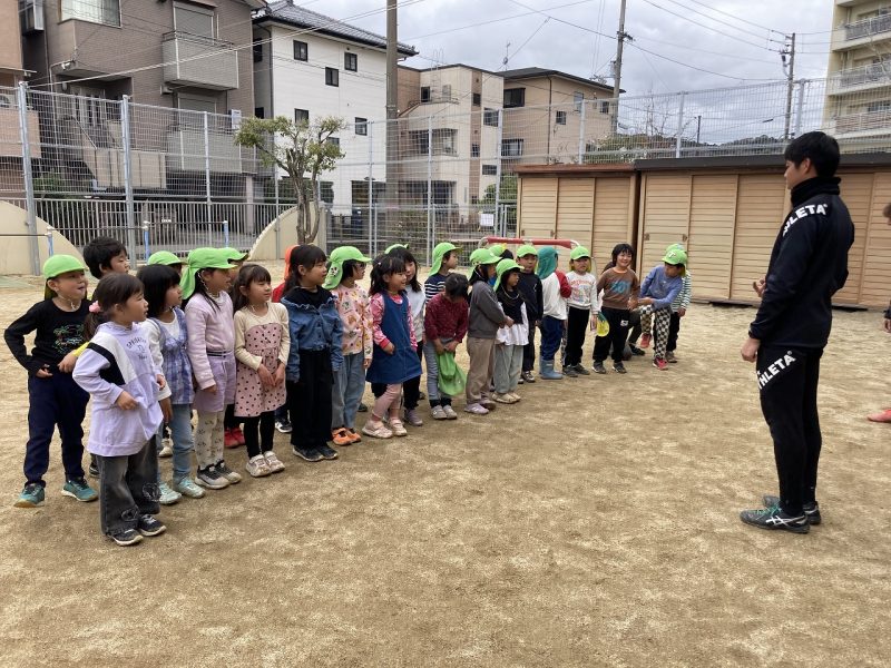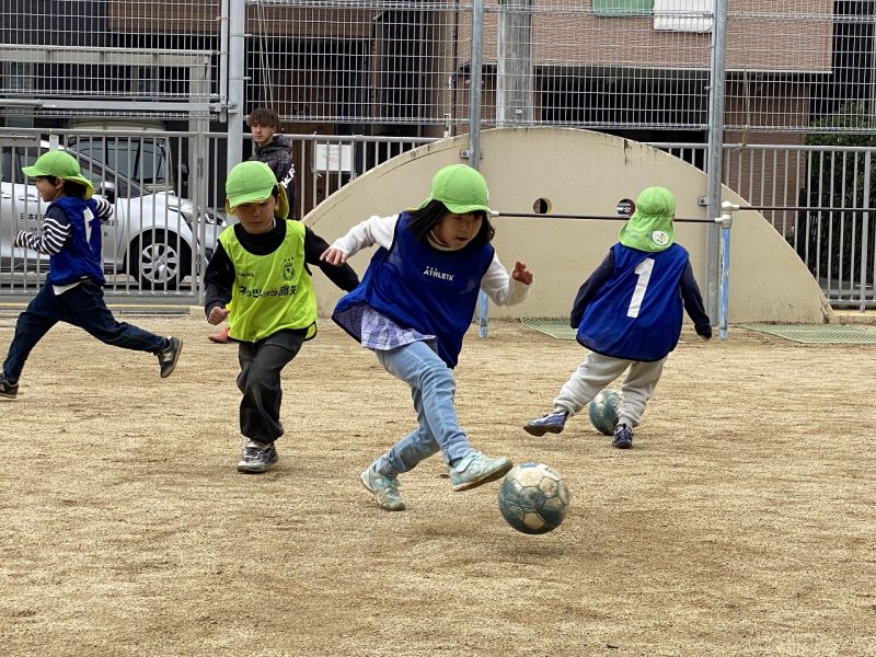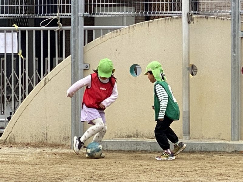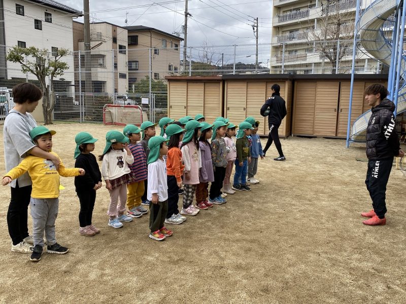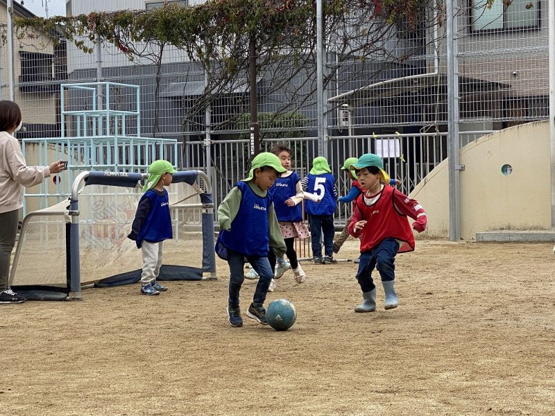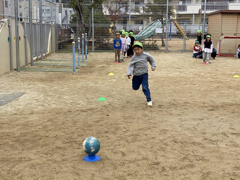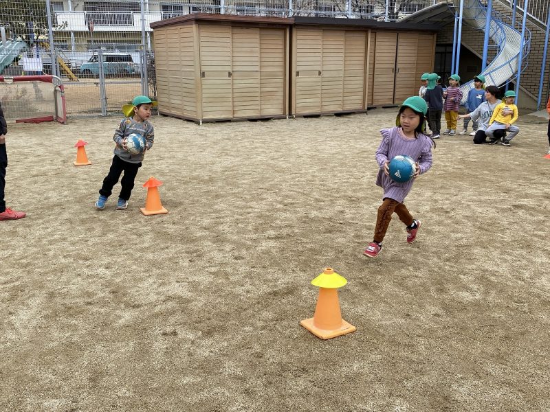 今日は、4,5歳児対象で、高知ユナイテッドSCのコーチが2名来園し、サッカー教室がありました。